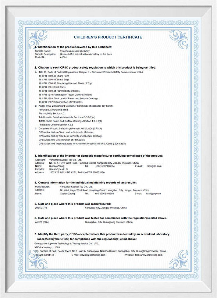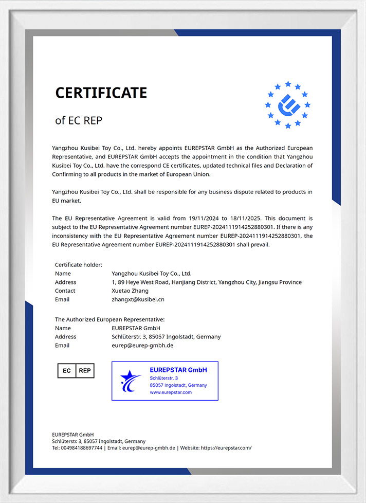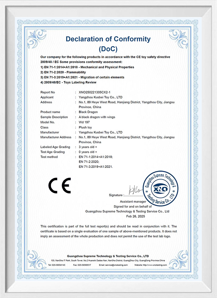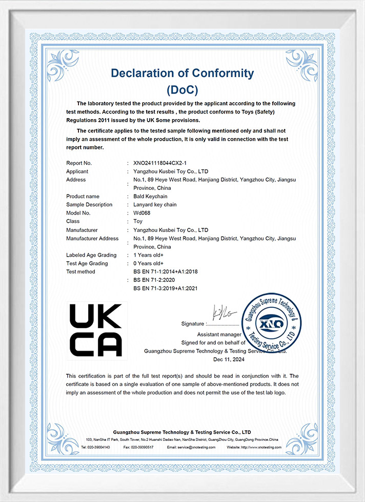 Les matériaux et les processus de production de nos solutions de jouets personnalisées répondent aux normes de qualité: UKCA EN71, CE EN71, CPC, s'assurant qu'ils sont absolument sûrs.